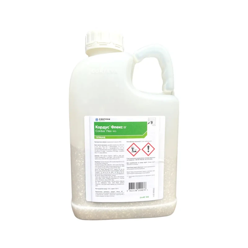 Кордус Флекс - це високоефективний післявсходовий гербіцид від Corteva, який допомагає контролювати однорічні та багаторічні злакові і дводольні бур'яни в посадках кукурудзи. Завдяки своїй унікальній формулі з діючими речовинами дикамбі натрієва сіль, римсульфурон, нікосульфурон та антидотом ізоксадифен-етил, цей гербіцид надійно знищує понад 200 видів дводольних бур'янів та переважну більшість злакових бур'янів.